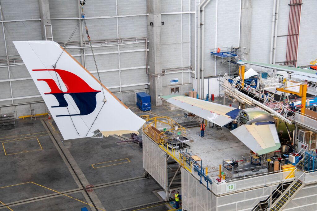 With the main fuselage sections, wings, and tail adorned with the airline’s iconic wau logo fully attached, the aircraft will undergo installation of the cockpit, engines, landing gear, electrical wiring, avionics, and fuel and hydraulic systems. The aircraft will then proceed with thorough ground checks, cabin installation and prepare for its first test flight, before making its journey home to Malaysia.