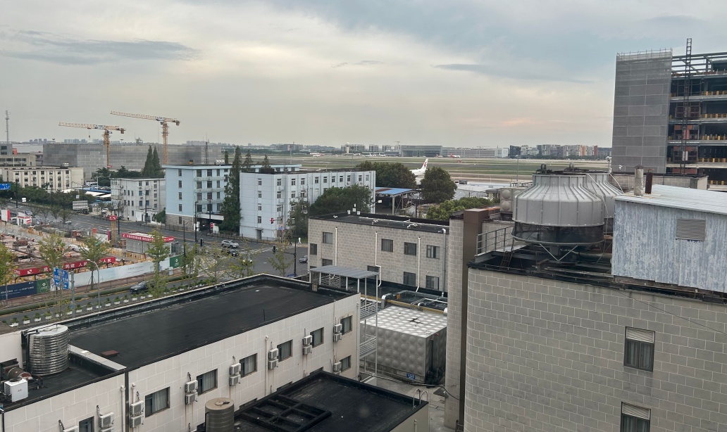 I stayed at the Holiday Inn, a new hotel rather better sited than the Dazhong Hotel that was once a favourite. The hotel is placed between terminals one and two and is reached through the passageways between the two. The inside is well appointed, the airport view rooms are almost luxurious. From the large windows (they do not open) the outlook is towards the satellite terminal, a cross taxiway, and, in the distance, all four runways. You need tracking apps to identify aircraft, and photography is hit and miss. The staff were friendly and obliging and the breakfast amazing.