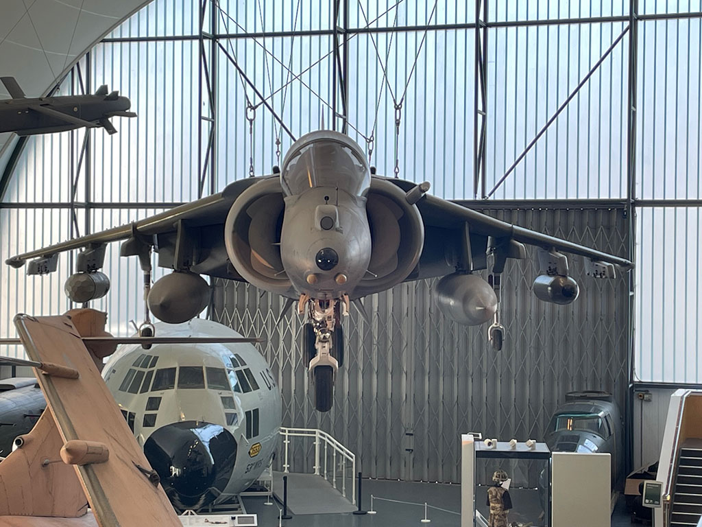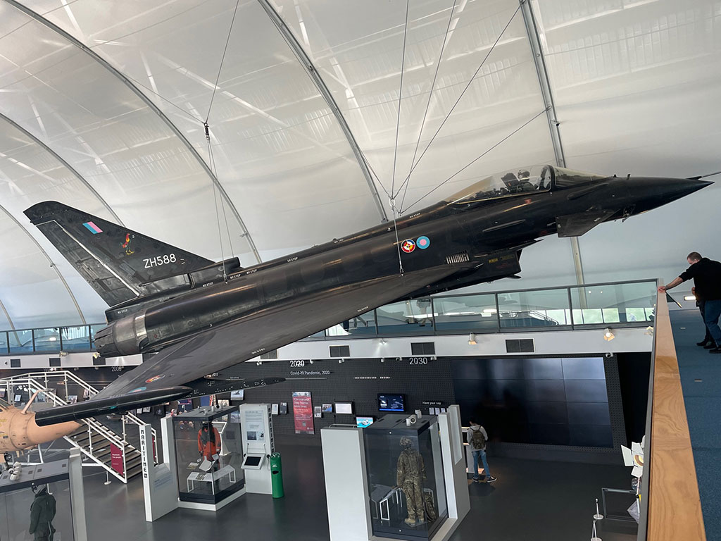 Types like the Jaguar, Tornado, Eurofighter Typhoon, Buccaneer and Harrier. A first floor walkway gives you a good vantage point for taking pictures of the aircraft hanging from the ceiling.